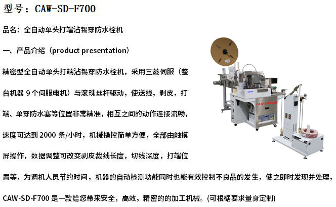 CAW-SD-F700自動單頭打端沾錫穿防水栓機
